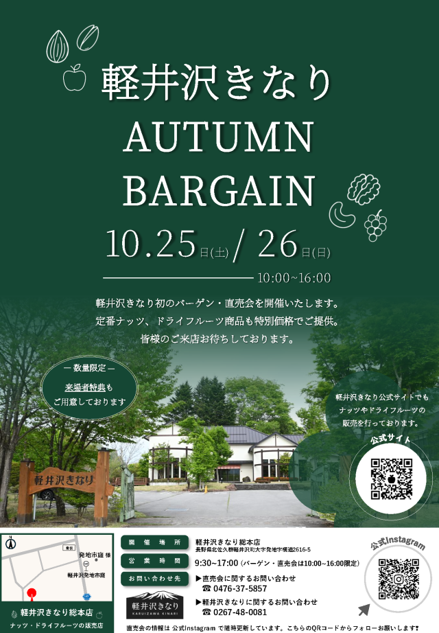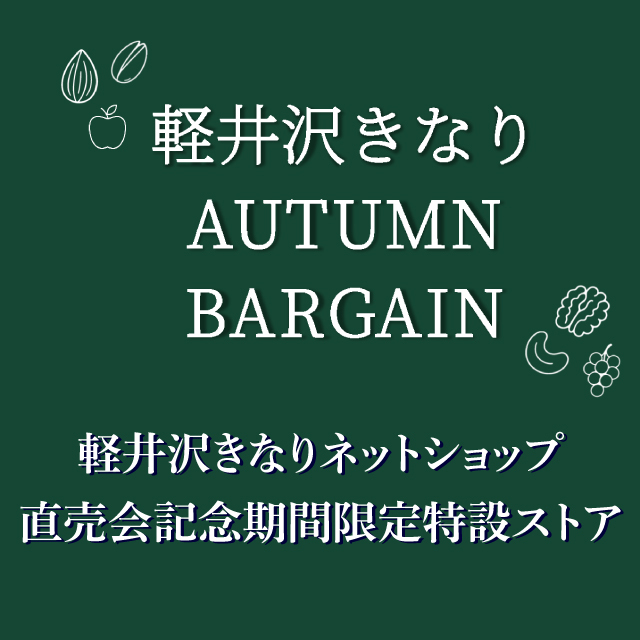10月25日(土)~10月26日(日)に開催されます直売会を記念し、軽井沢きなりHPでも記念セールを開催いたします!